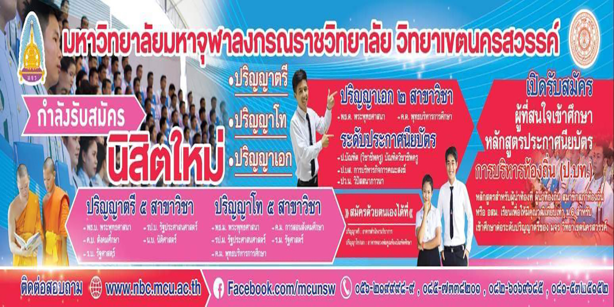 ประกาศมหาวิทยาลัยมหาจุฬาลงกรณราชวิทยาลัย วิทยาเขตนครสวรรค์ เรื่อง ปฏิทินการศึกษาระดับปริญญาตรี ภาคเรียนที่ ๒ ปีการศึกษา ๒๕๖๗ ************************* เพื่อให้การบริหารเวลาเรียนของมหาวิทยาลัยมหาจุฬาลงกรณราชวิทยาลัย วิทยาเขตนครสวรรค์ ดำเนินไปด้วยความเรียบร้อย มีประสิทธิภาพ และบรรลุวัตถุประสงค์ตามนโยบายของมหาวิทยาลัย อาศัยอำนาจตามความในมาตรา…