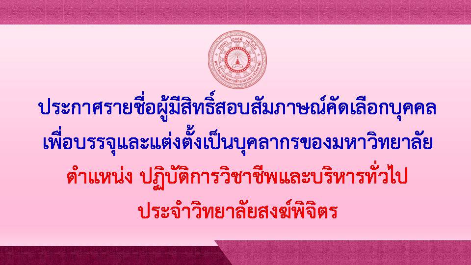 Share Facebook Twitter LinkedIn Pinterest Email ประกาศรายชื่อผู้มีสิทธิ์สอบสัมภาษณ์คัดเลือกบุคคล เพื่อบรรจุและแต่งตั้งเป็นบุคลากรของมหาวิทยาลัย ตำแหน่ง ปฏิบัติการวิชาชีพและบริหารทั่วไป ประจำวิทยาลัยสงฆ์พิจิตร Related posts:ประกาศผลการสอบคัดเลือกเข้าศึกษา ระดับปริญญาเอก และปริญญาโท ประจำปีการศึกษา ๒๕๖๒การตรวจประเมินคุณภาพภายใน วิทยาเขตนครสวรรค์ประกาศมหาวิทยาลัยมหาจุฬาลงกรณราชวิทยาลัย วิทยาเขตนครสวรรค์ เรื่อง กำหนดการสอบวัดผลการศึกษา ภาคการศึก...
