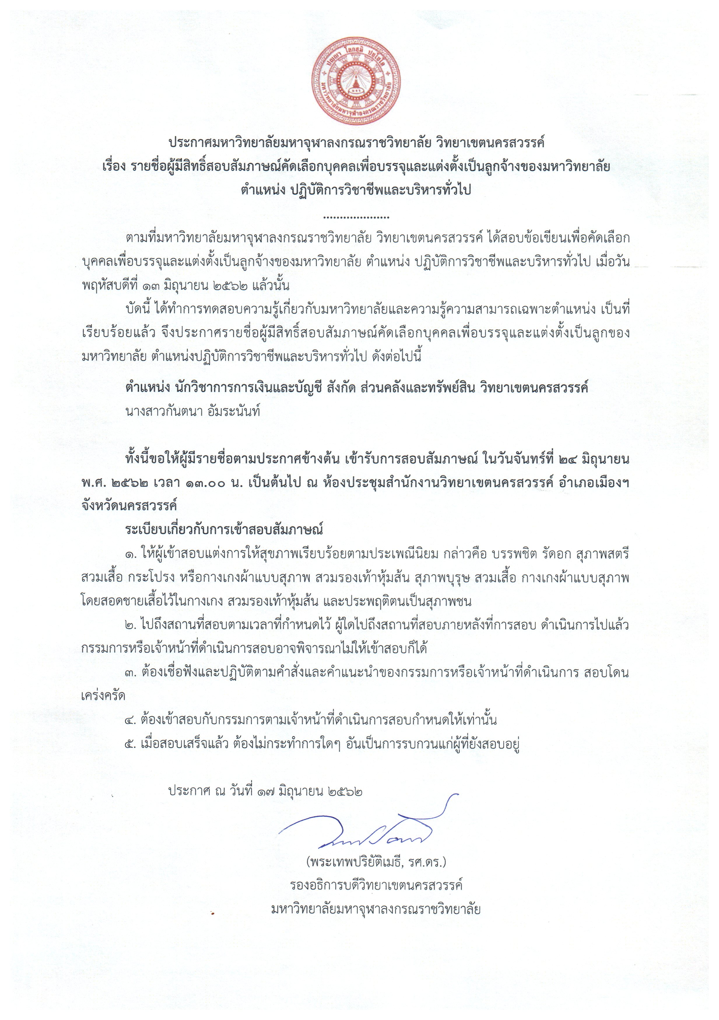Share Facebook Twitter LinkedIn Pinterest Email ประกาศรายชื่อผู้มีสิทธิ์สอบสัมภาษณ์คัดเลือกบุคคลเพื่อบรรจุและแต่งตั้งเป็นลูกจ้างของมหาวิทยาลัย ตำแหน่ง ปฏิบัติการวิชาชีพและบริหารทั่วไป Related posts:ประกาศมหาวิทยาลัยมหาจุฬาลงกรณราชวิทยาลัย วิทยาเขตนครสวรรค์ เรื่อง ปฏิทินการศึกษาระดับปริญญาตรี ภาคเร...ตรวจสอบรายชื่อนิสิตที่ผ่านการอนุมัติปริญญาตรีจากสภามหาวิทยาลัย บัณฑิตรุ่นที่ 67 ครั้งที่ 1/2565กำหนดการแข่งขันกีฬาสัมพันธ์ MCU นครสวรรค์ "เจ้าพระยาเกมส์"