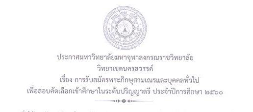 Share Facebook Twitter LinkedIn Pinterest Email ประกาศ มหาวิทยาลัยมหาจุฬาลงกรณราชวิทยาลัย วิทยาเขตนครสวรรค์ เรื่อง การรับสมัครพระภิกษุสามเณร และบุคคลทั่วไป เพื่อสอบคัดเลือกเข้าศึกษาในระดับปริญญาตรี ประจำปีการศึกษา 2560 Loading... Taking too long? Reload document | Open in new tab ดาวน์โหลด [184.24 KB] Related posts:ประกาศวิทยาเขตนครสวรรค์ มหาวิทยาลัยมหาจุฬาลงกรณราชวิทยาลัย เรื่อง วันหยุดราชการประกาศวิทยาลัยสงฆ์นครสวรรค์ มหาวิทยาลัยมหาจุฬาลงกรณราชวิทยาลัย วิทยาเขตนครสวรรค์ เรื่อง การจัดการเรี...ประกาศ การชำระค่าลงทะเบียน ประจำภาคเรียนที่ 1/2560