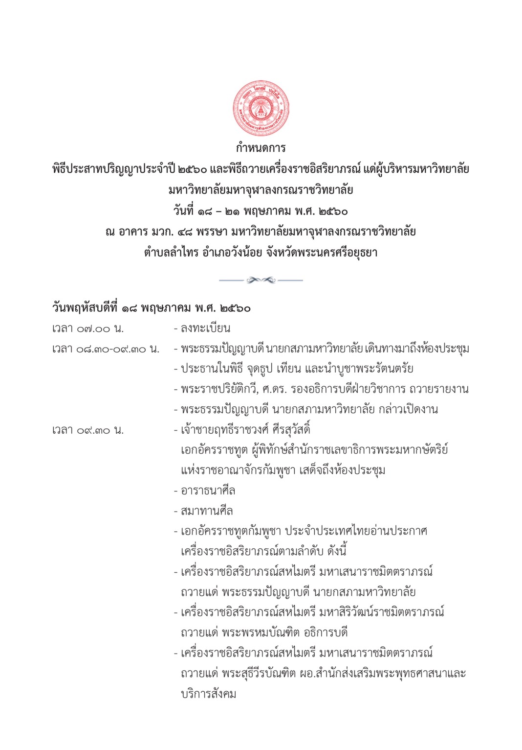 ประกาศมหาวิทยาลัยมหาจุฬาลงกรณราชวิทยาลัย วิทยาเขตนครสวรรค์ เรื่อง ปฏิทินการศึกษาระดับปริญญาตรี ภาคเรียนที่ ๒ ปีการศึกษา ๒๕๖๗07/11/2025