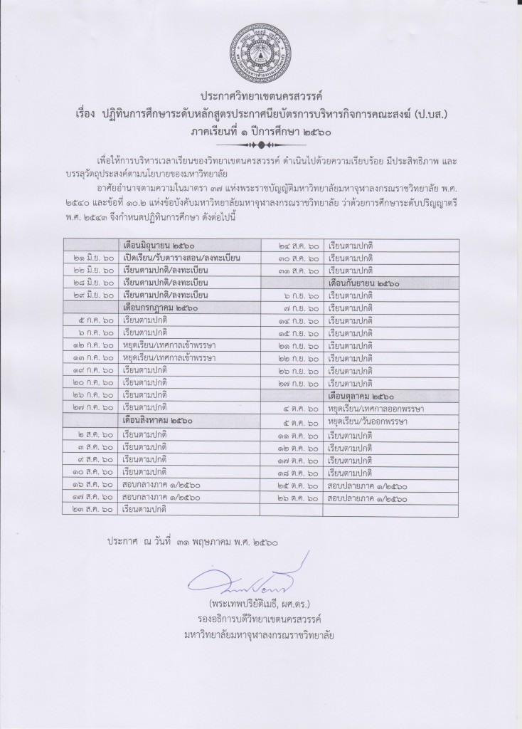 ประกาศมหาวิทยาลัยมหาจุฬาลงกรณราชวิทยาลัย วิทยาเขตนครสวรรค์ เรื่อง ปฏิทินการศึกษาระดับปริญญาตรี ภาคเรียนที่ ๒ ปีการศึกษา ๒๕๖๗07/11/2025