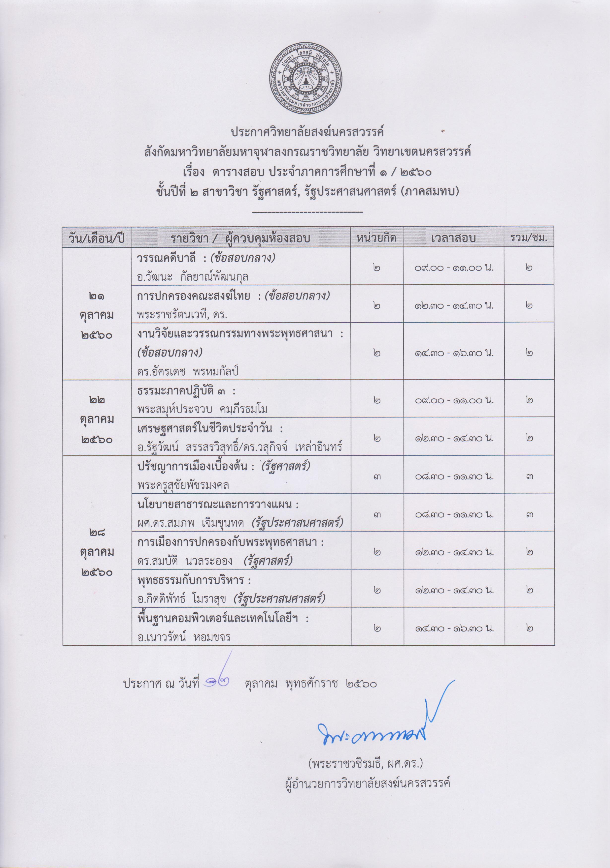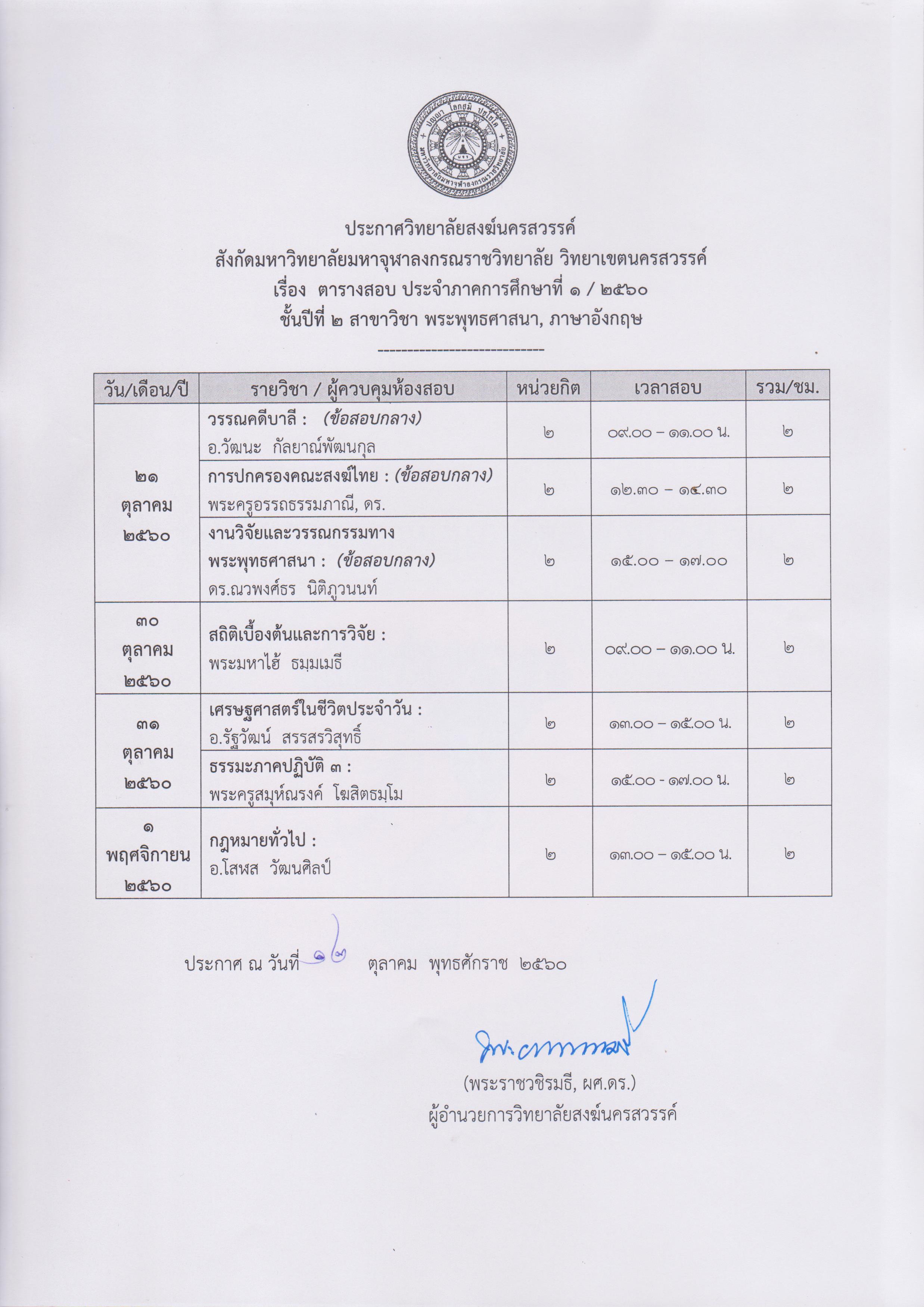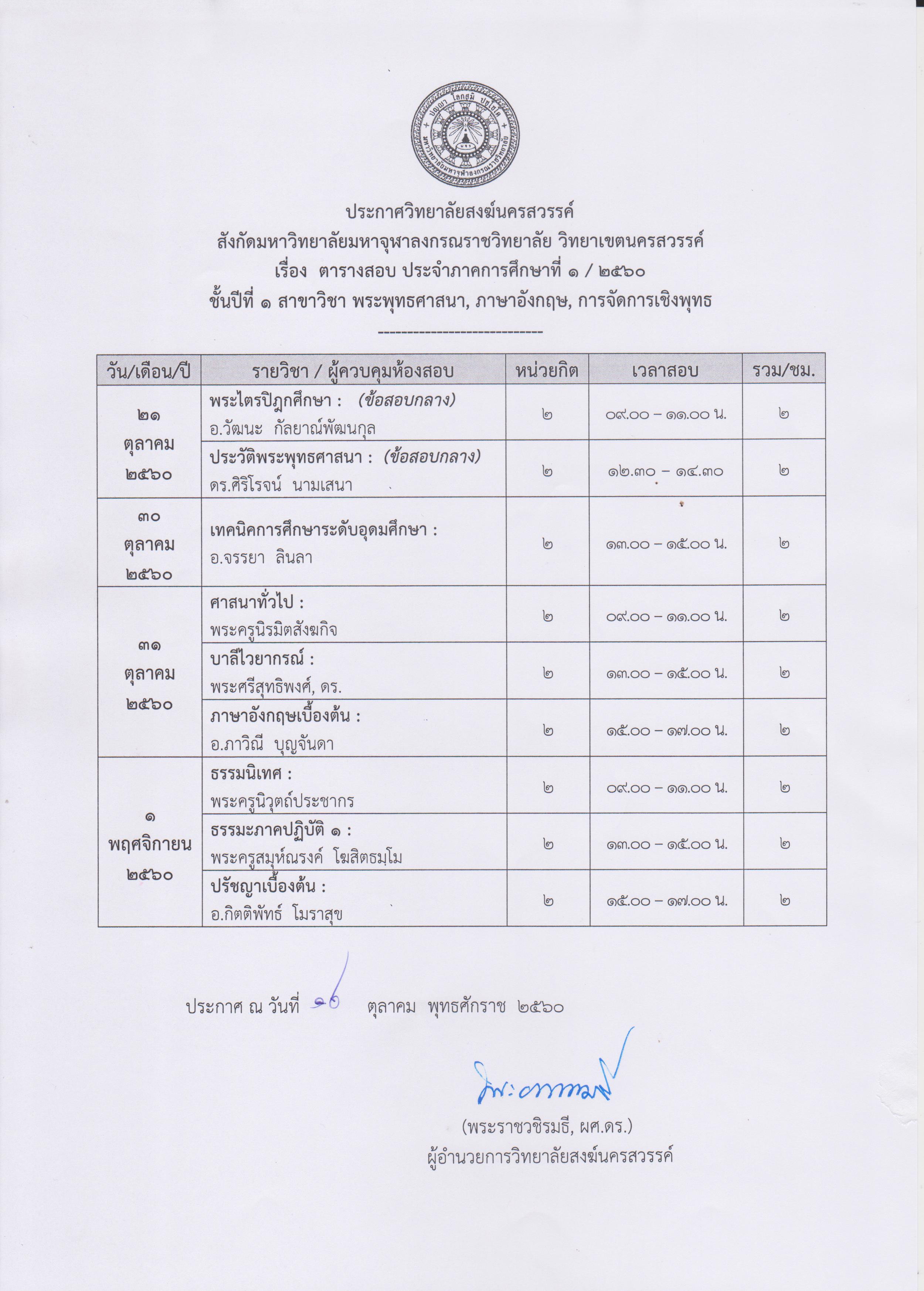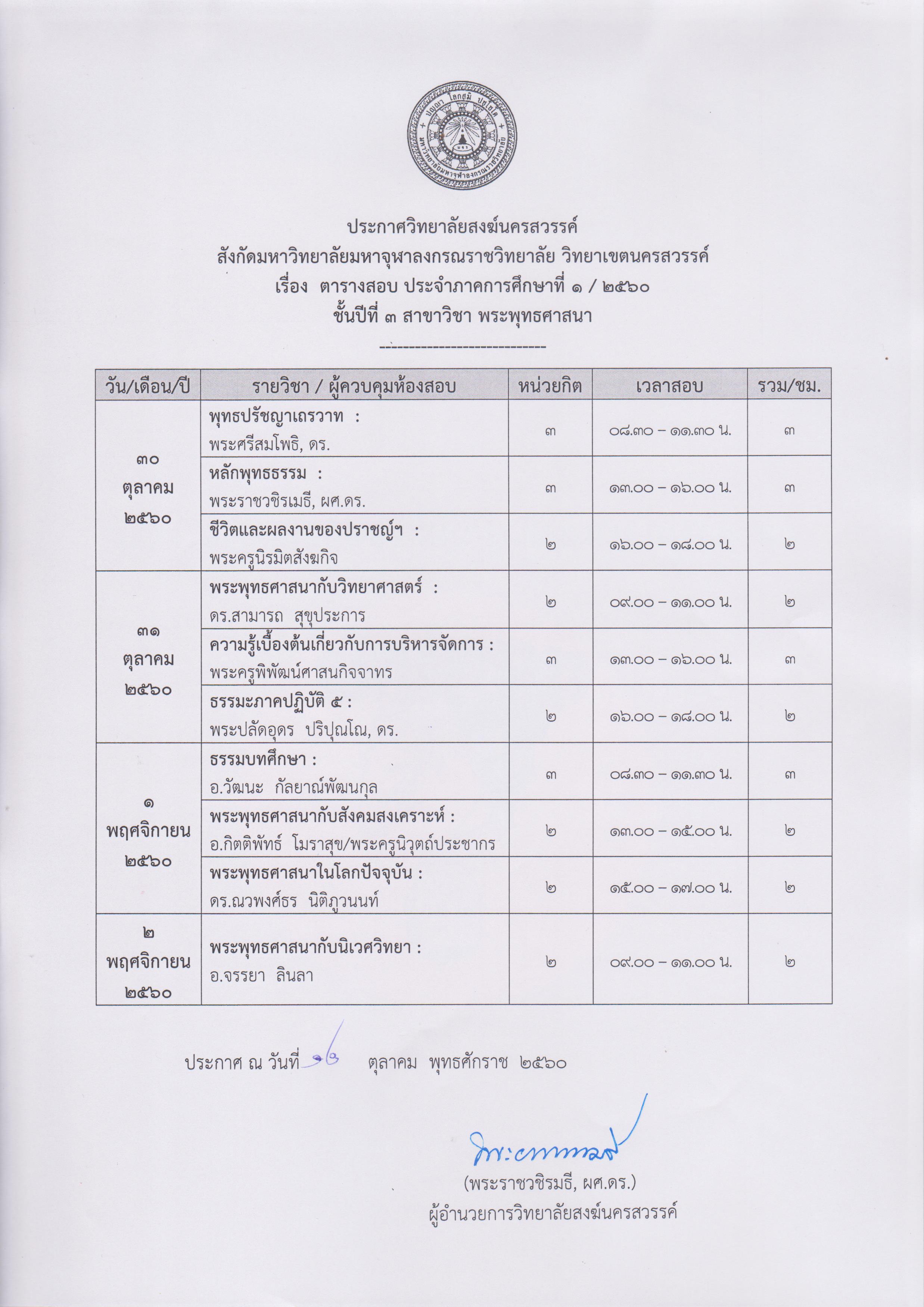 ตารางสอบ ระดับปริญญาตรี ประจำภาคเรียนที่ 1/2560