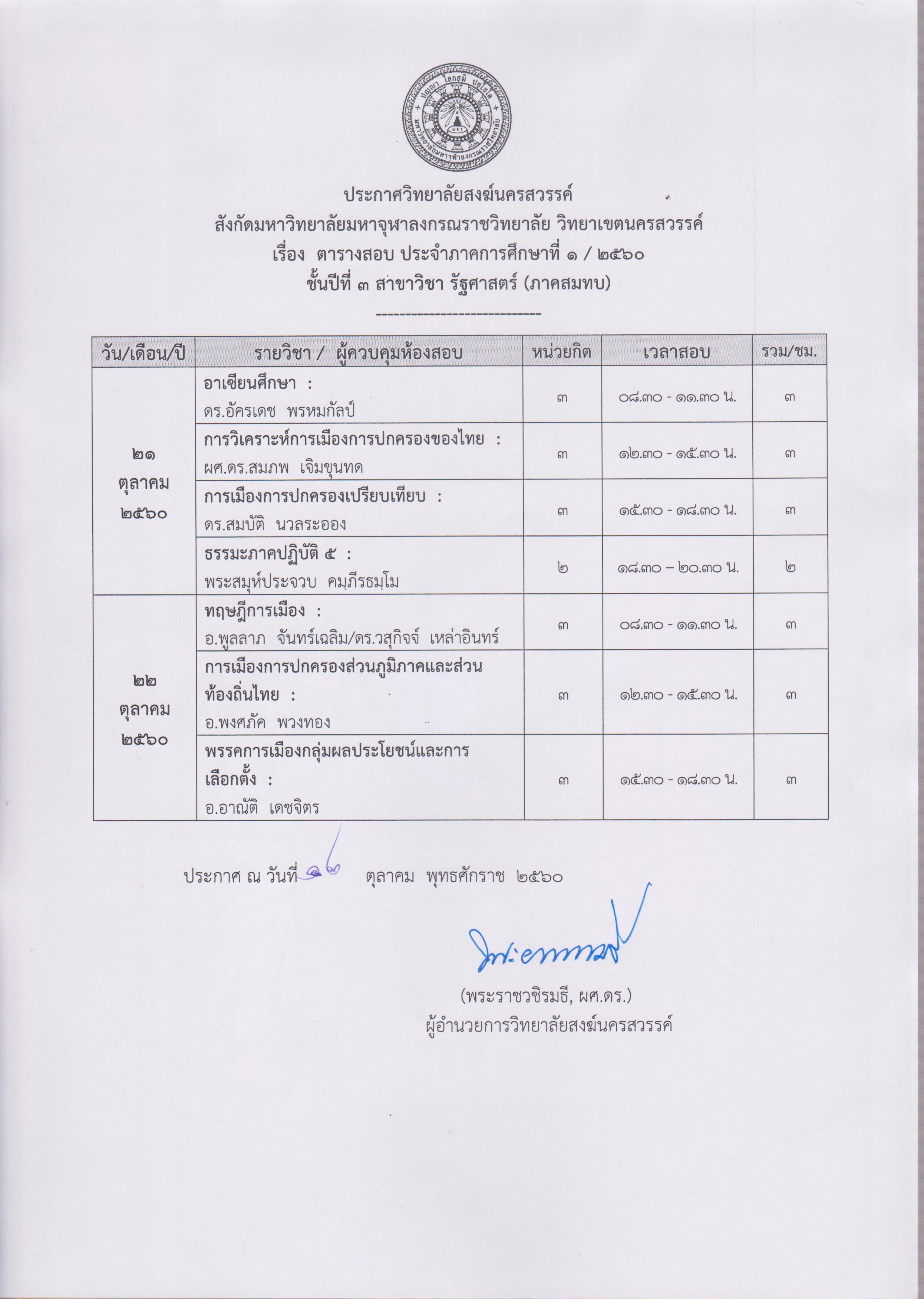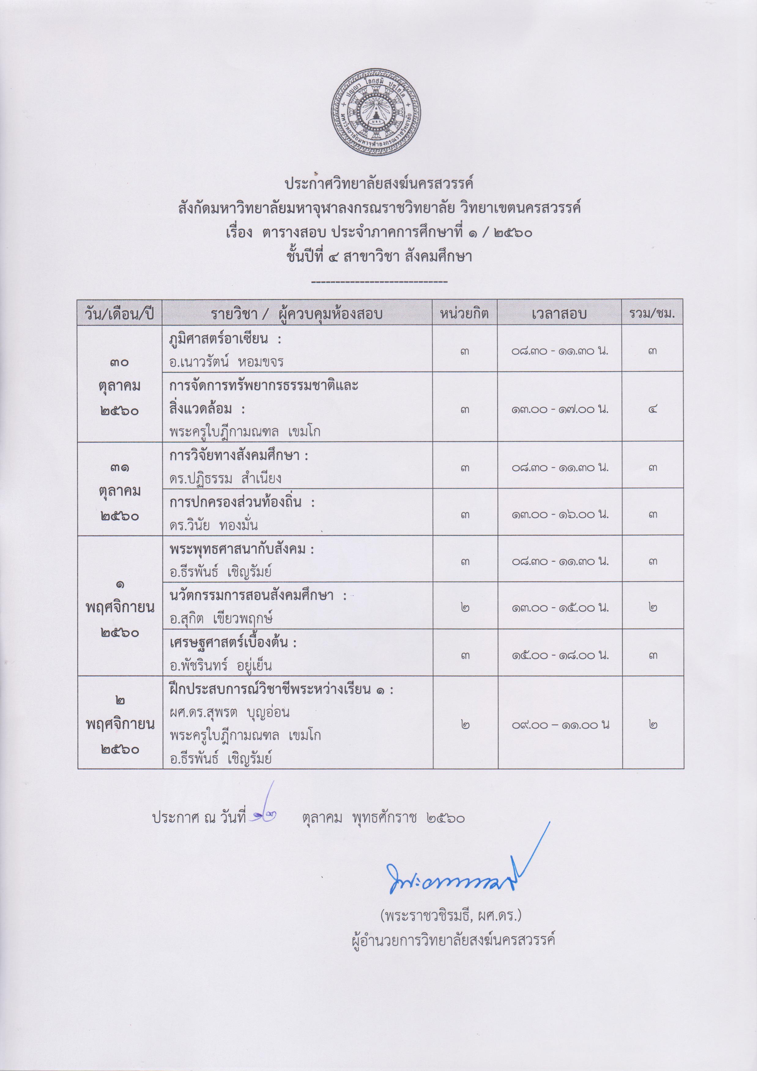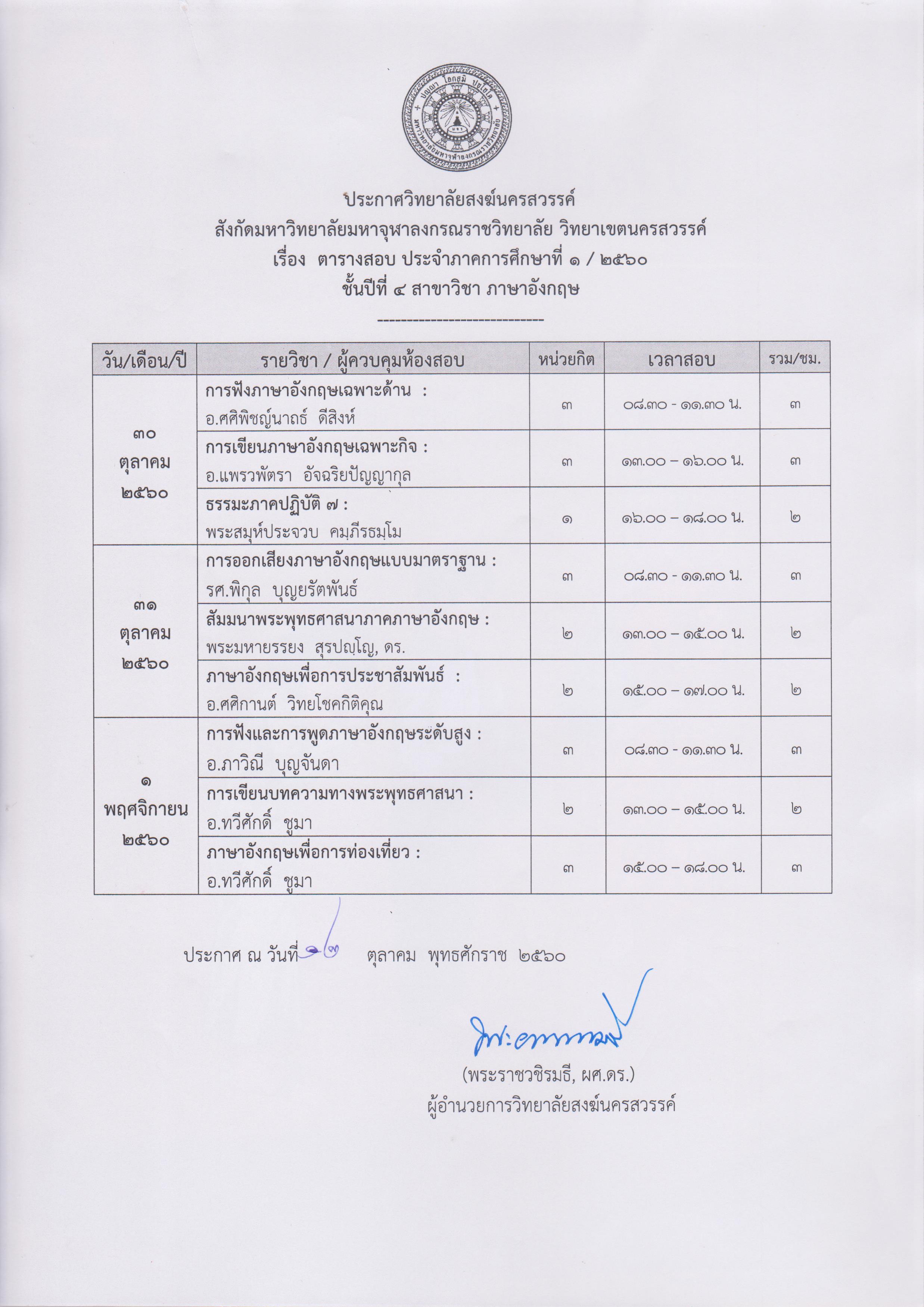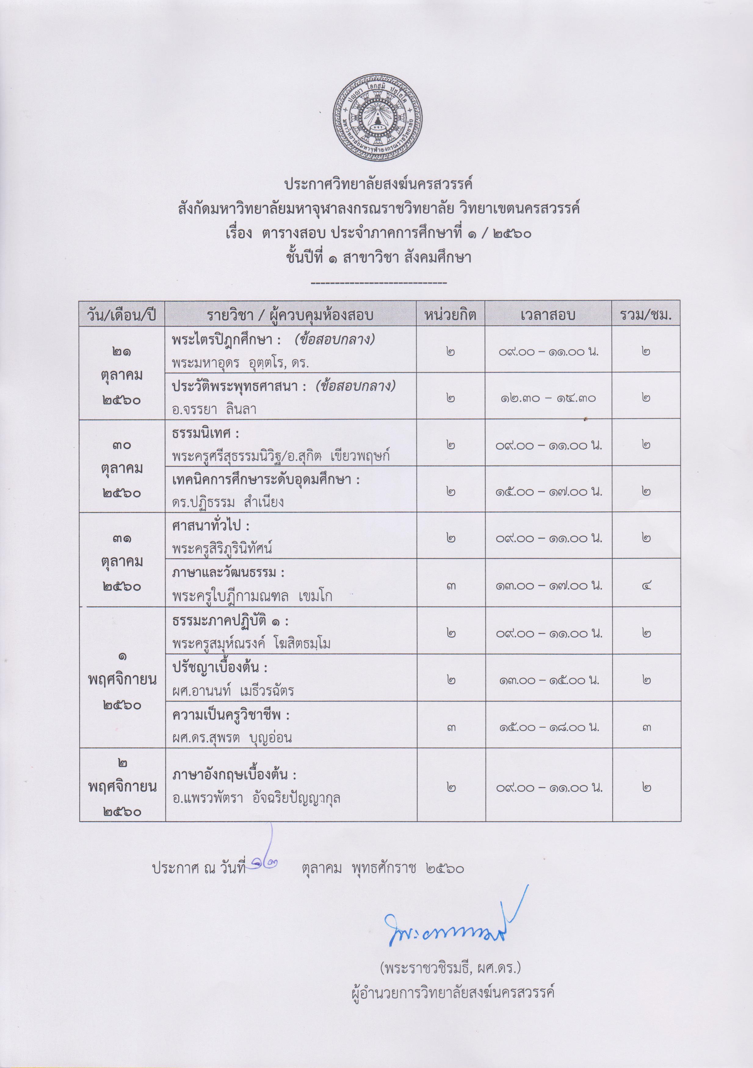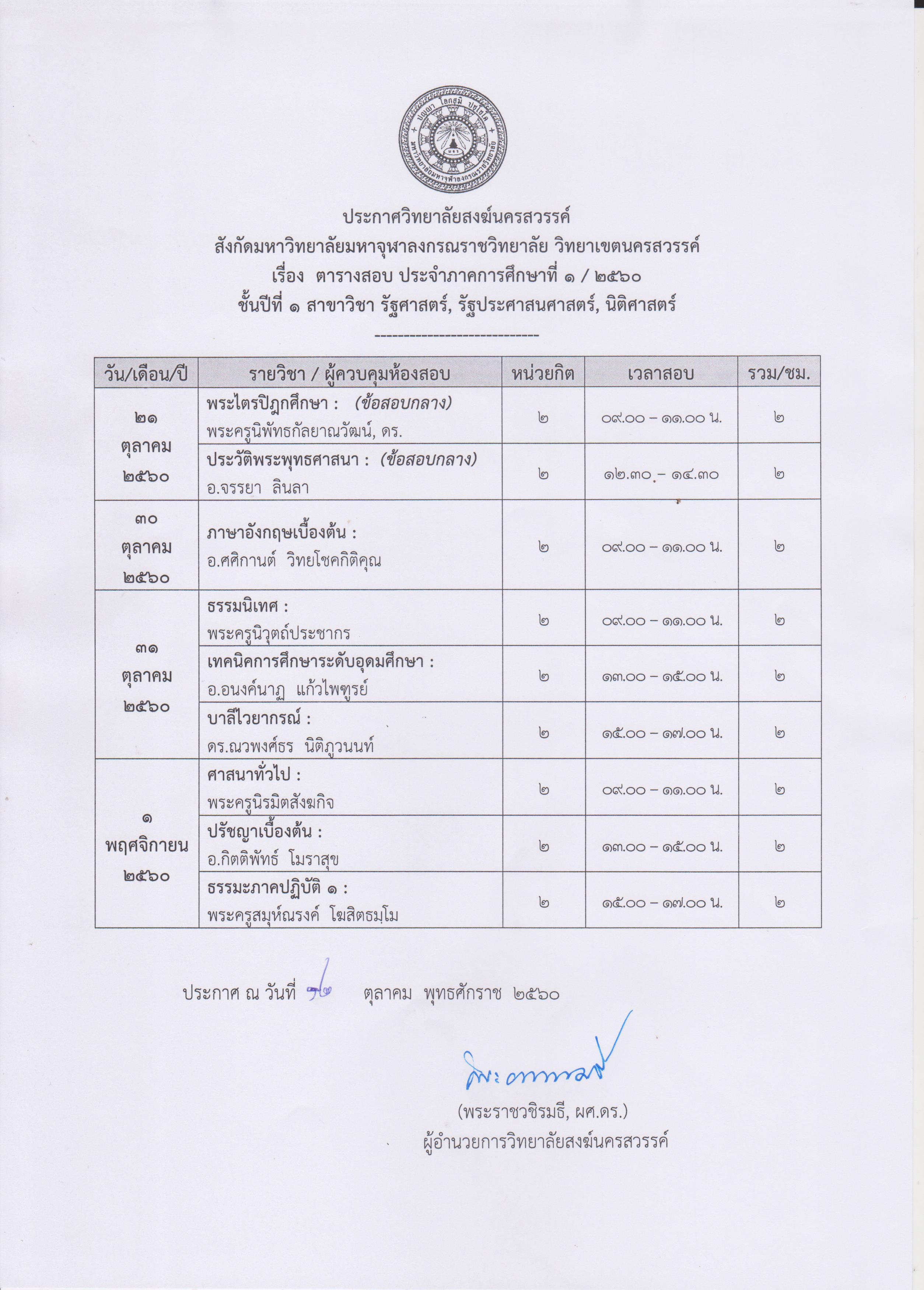 ตารางสอบ ระดับปริญญาตรี ประจำภาคเรียนที่ 1/2560