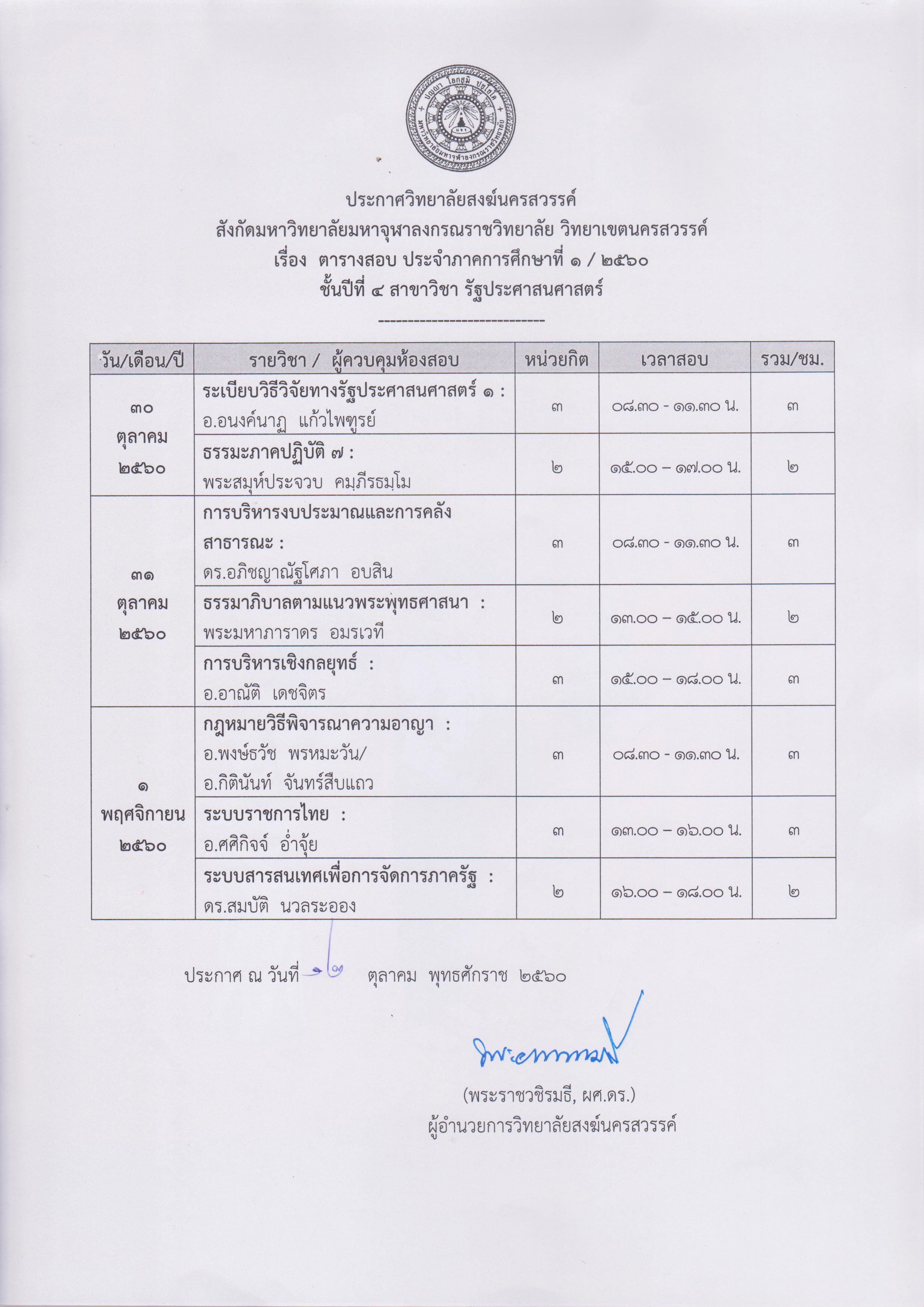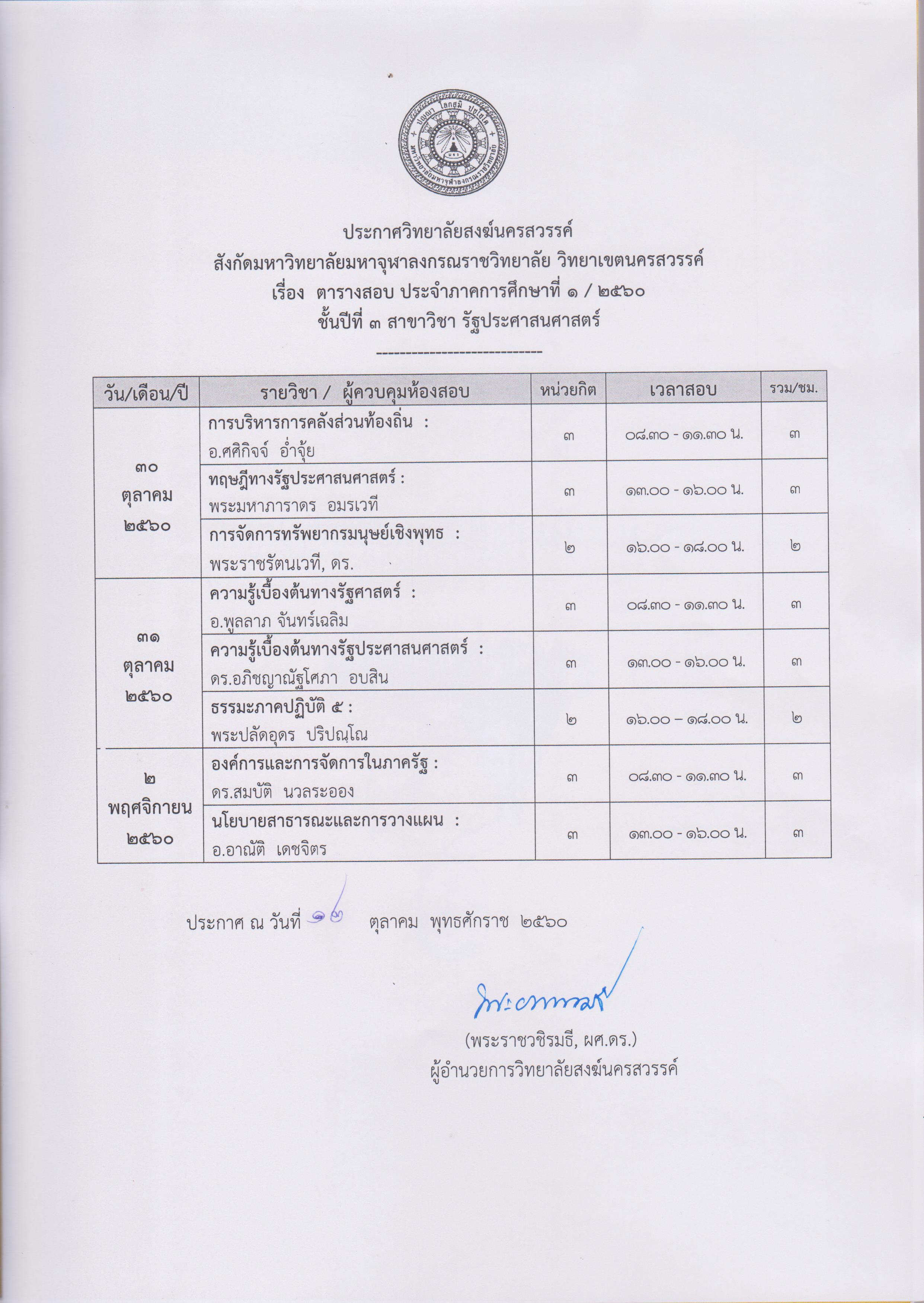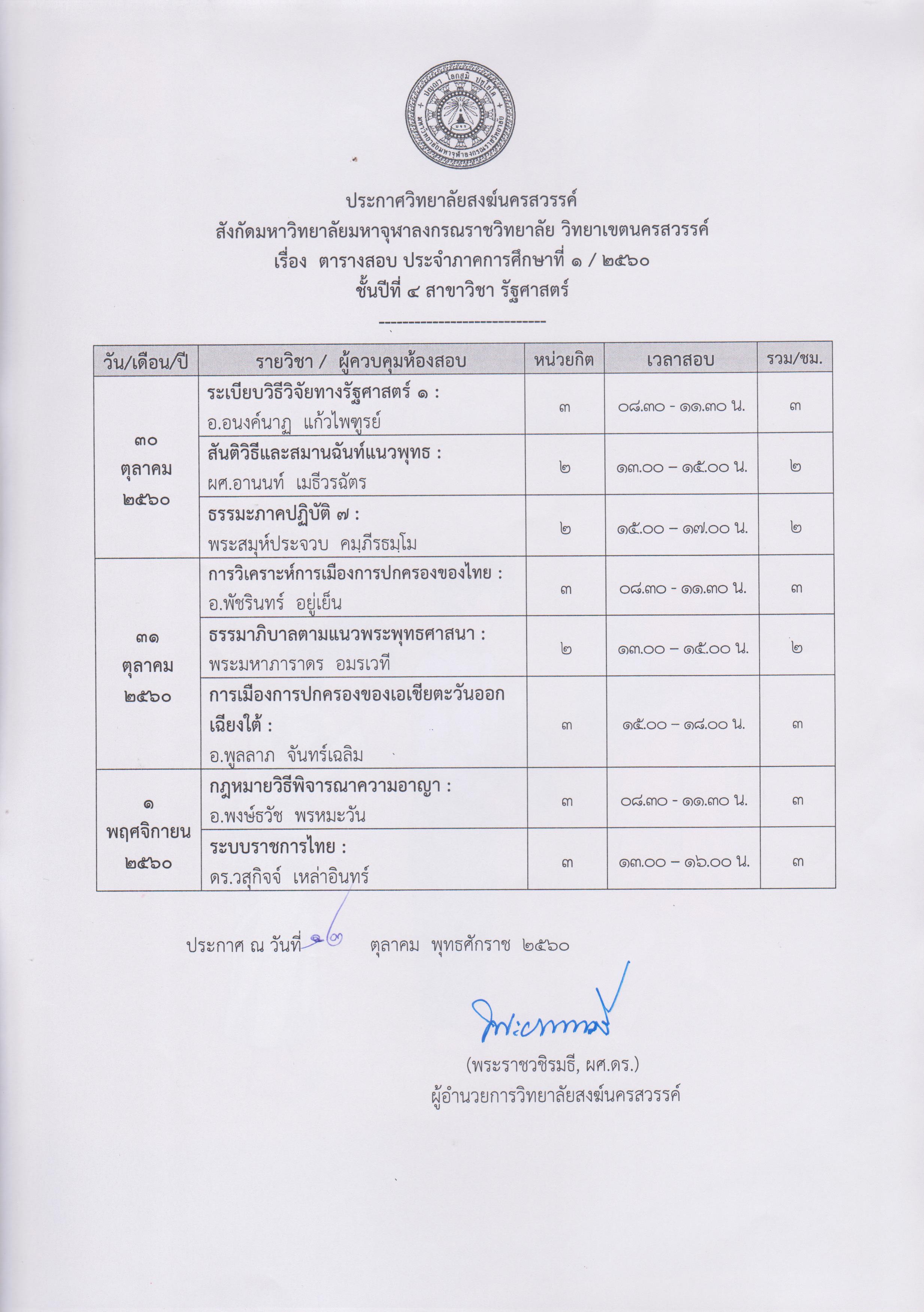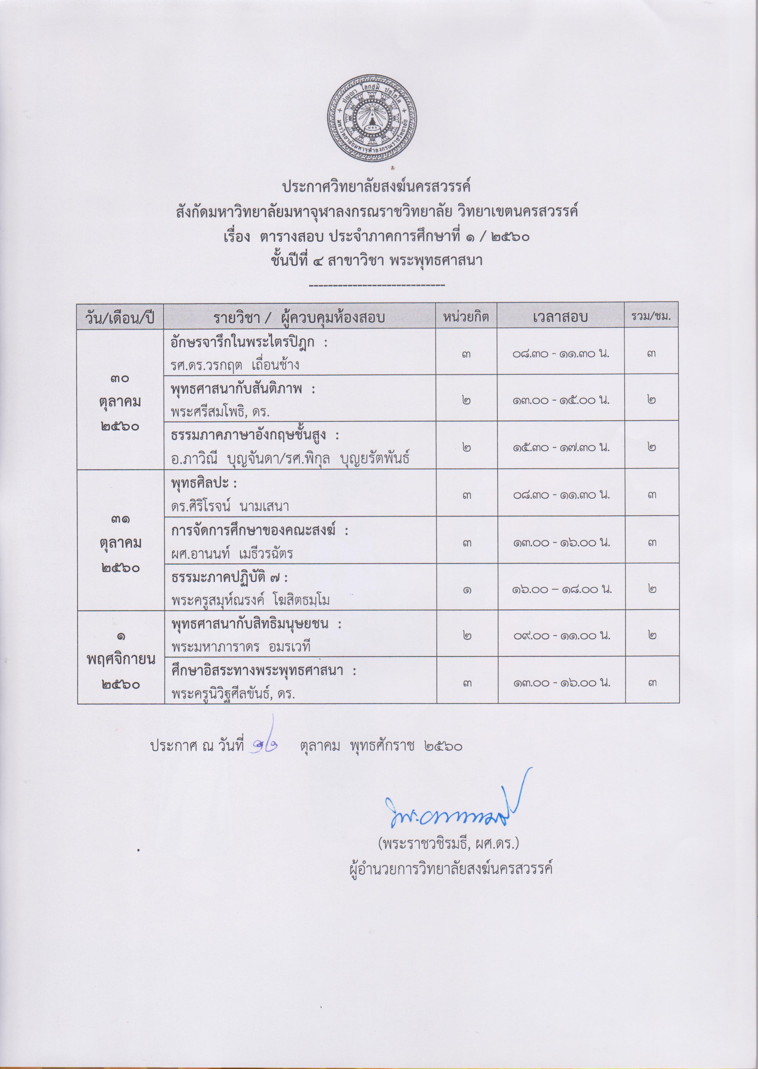 ตารางสอบ ระดับปริญญาตรี ประจำภาคเรียนที่ 1/2560
