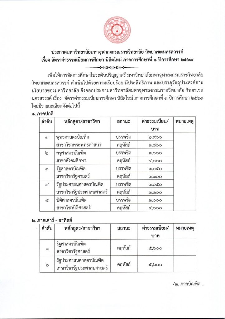 ประกาศมหาวิทยาลัยมหาจุฬาลงกรณราชวิทยาลัย วิทยาเขตนครสวรรค์ เรื่อง ปฏิทินการศึกษาระดับปริญญาตรี ภาคเรียนที่ ๒ ปีการศึกษา ๒๕๖๗