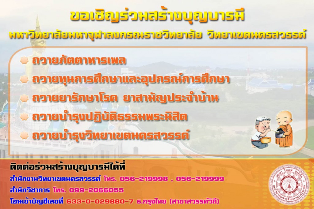 กำหนดการ งานมหกรรมส่งเสริมศีลธรรมและการประกวดกิจกรรมพัฒนาผู้เรียน ด้านพระพุทธศาสนา ครั้งที่ ๓ (3rd MCU Contest) ระดับภาค (นครสวรรค์ กำแพงเพชร พิจิตร เพชรบูรณ์) วันพุธที่ ๑๖ สิงหาคม พ.ศ. ๒๕๖๐ ณ อาคารหอประชุมเฉลิมพระเกียรติ…