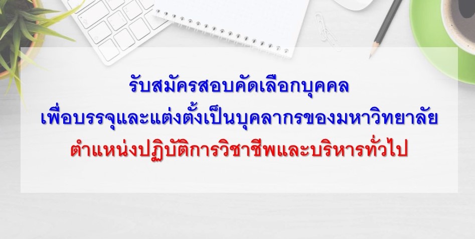 รับสมัครสอบคัดเลือกบุคคลเพื่อบรรจุและแต่งตั้งเป็นบุคลากรของมหาวิทยาลัย ตำแหน่งปฏิบัติการวิชาชีพและบริหารทั่วไป