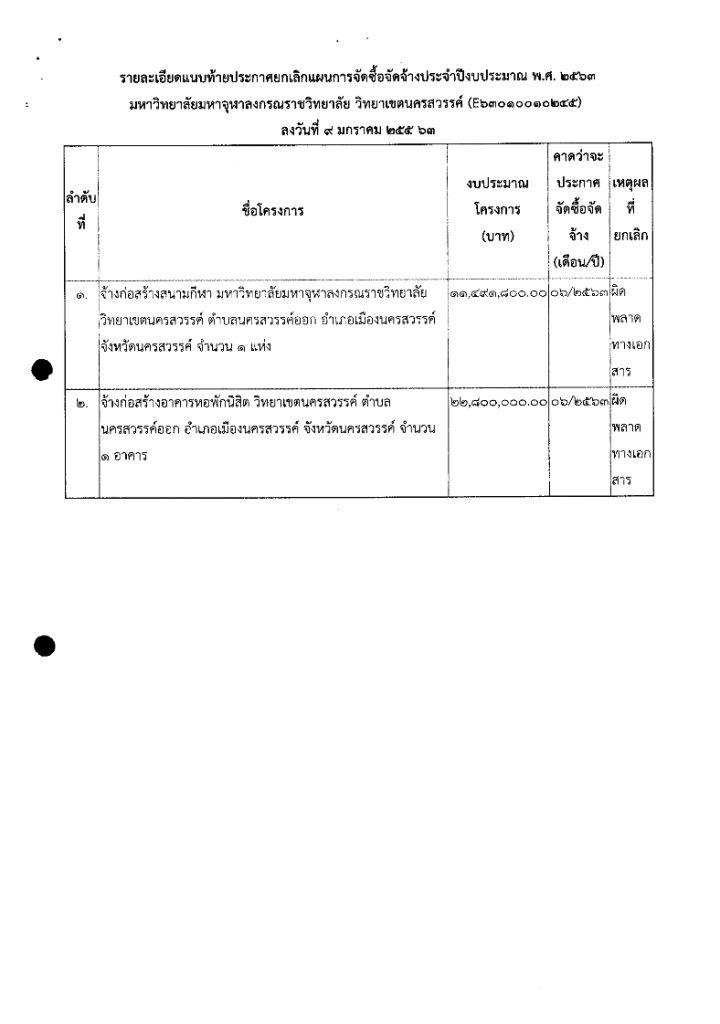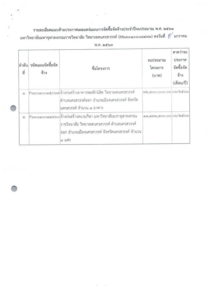 ประกาศ เรื่อง ประกวดราคาจ้างก่อสร้างสนามกีฬา วิทยาเขตนครสวรรค์