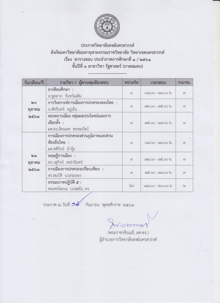 ตารางสอบ ประจำภาคการศึกษาที่ ๑/๒๕๖๑