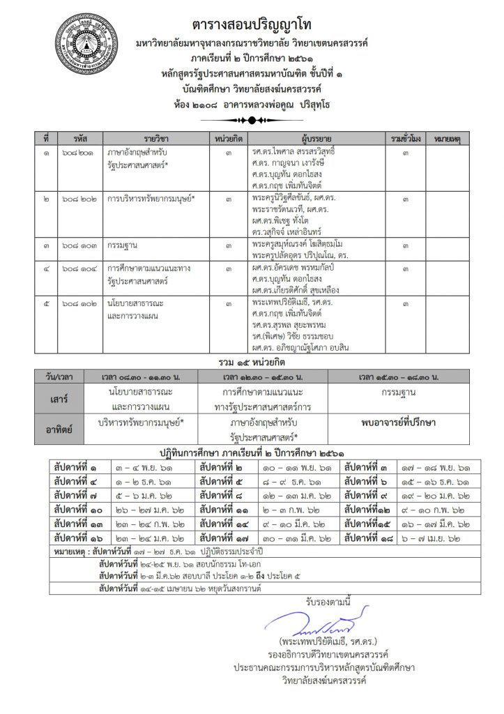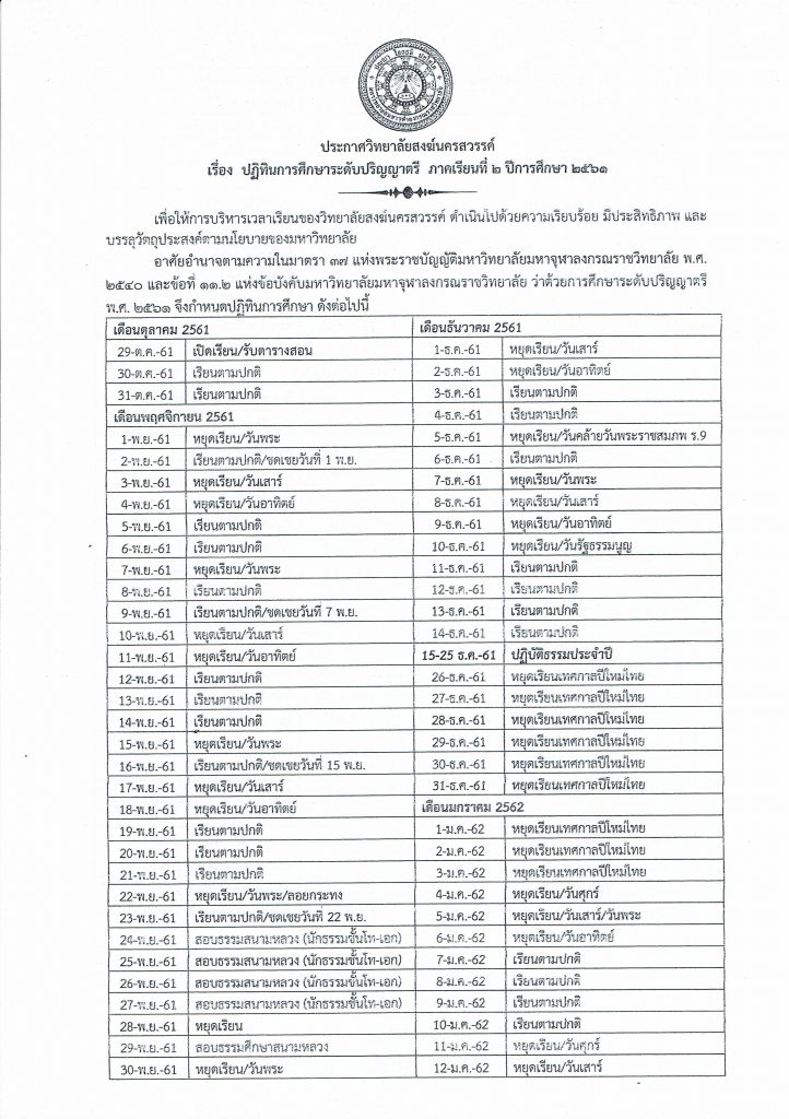 ปฏิทินการศึกษาระดับปริญญาตรี ภาคเรียนที่ ๒/๒๕๖๑ โหลด PDF >> ดาวน์โหลด