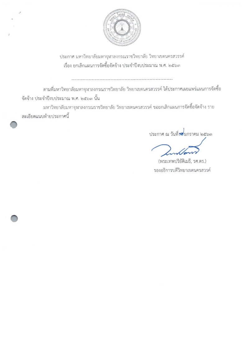 ประกาศมหาวิทยาลัยมหาจุฬาลงกรณราชวิทยาลัย วิทยาเขตนครสวรรค์ เรื่อง ประกาศผู้ชนะการเสนอราคา ประกวดราคาซื้อคอมพิวเตอร์ จำนวน ๖๒ เครื่อง ประจำปีงบประมาณ พ.ศ. ๒๕๖๙ ด้วยวิธีประกวดราคาอิเล็กทรอนิกส์ (e – bidding)29/10/2025