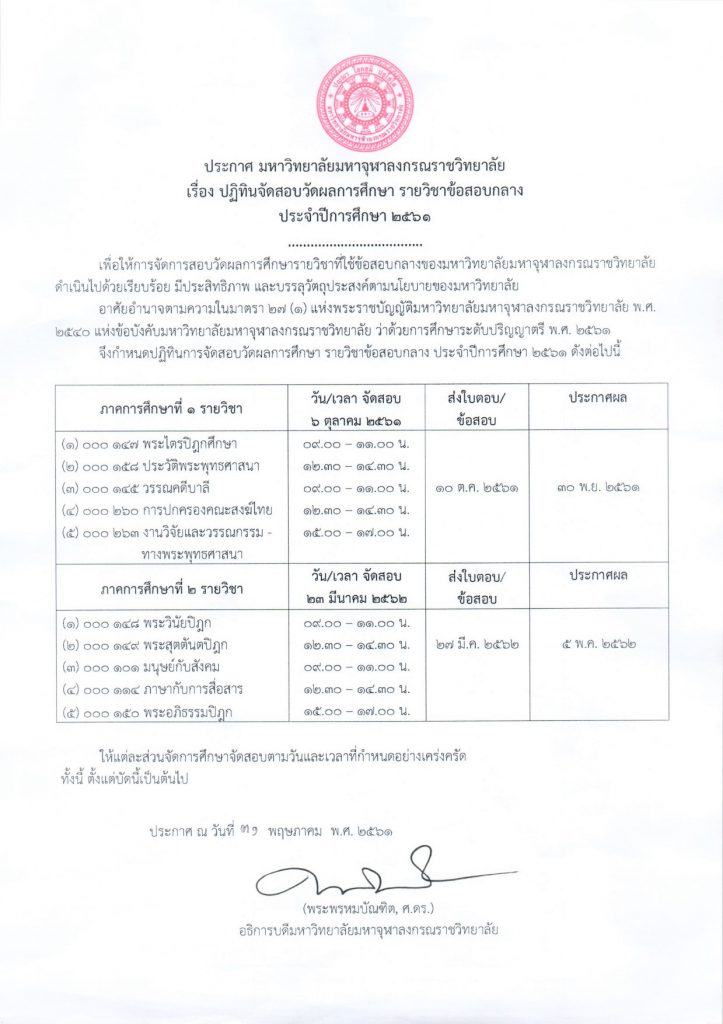 ประกาศวิทยาลัยสงฆ์นครสวรรค์ มหาวิทยาลัยมหาจุฬาลงกรณราชว […]