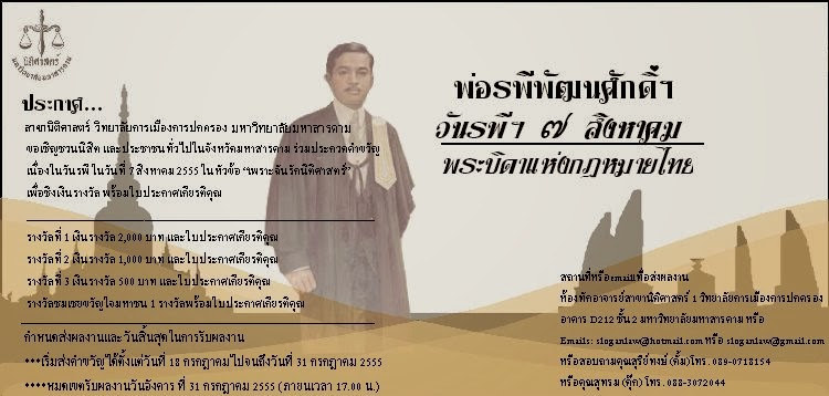 กำหนดการ กิจกรรมการแข่งขันตอบปัญหากฎหมาย สัปดาห์วันรพี […]