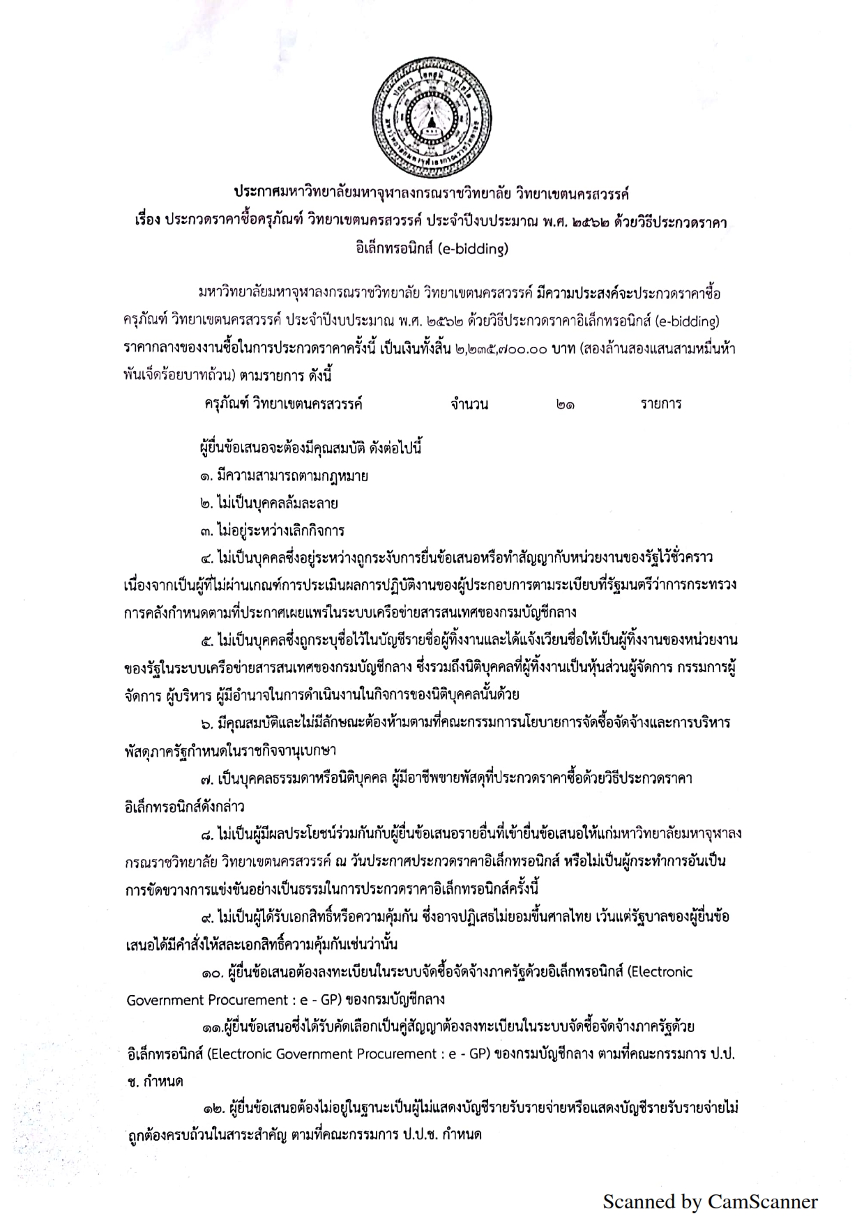 ประกาศมหาวิทยาลัยมหาจุฬาลงกรณราชวิทยาลัย วิทยาเขตนครสวรรค์ เรื่อง ประกาศผู้ชนะการเสนอราคา ประกวดราคาซื้อคอมพิวเตอร์ จำนวน ๖๒ เครื่อง ประจำปีงบประมาณ พ.ศ. ๒๕๖๙ ด้วยวิธีประกวดราคาอิเล็กทรอนิกส์ (e – bidding)29/10/2025