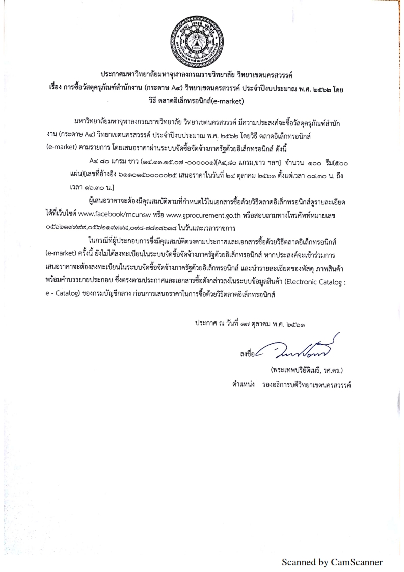 ประกาศมหาวิทยาลัยมหาจุฬาลงกรณราชวิทยาลัย วิทยาเขตนครสวรรค์ เรื่อง ประกาศผู้ชนะการเสนอราคา ประกวดราคาซื้อคอมพิวเตอร์ จำนวน ๖๒ เครื่อง ประจำปีงบประมาณ พ.ศ. ๒๕๖๙ ด้วยวิธีประกวดราคาอิเล็กทรอนิกส์ (e – bidding)29/10/2025