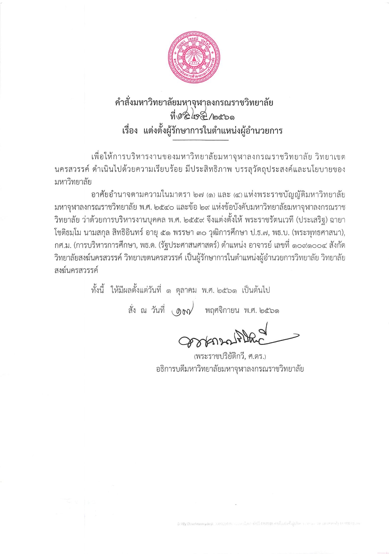 คำสั่งมหาวิทยาลัยมหาจุฬาลงกรณราชวิทยาลัย