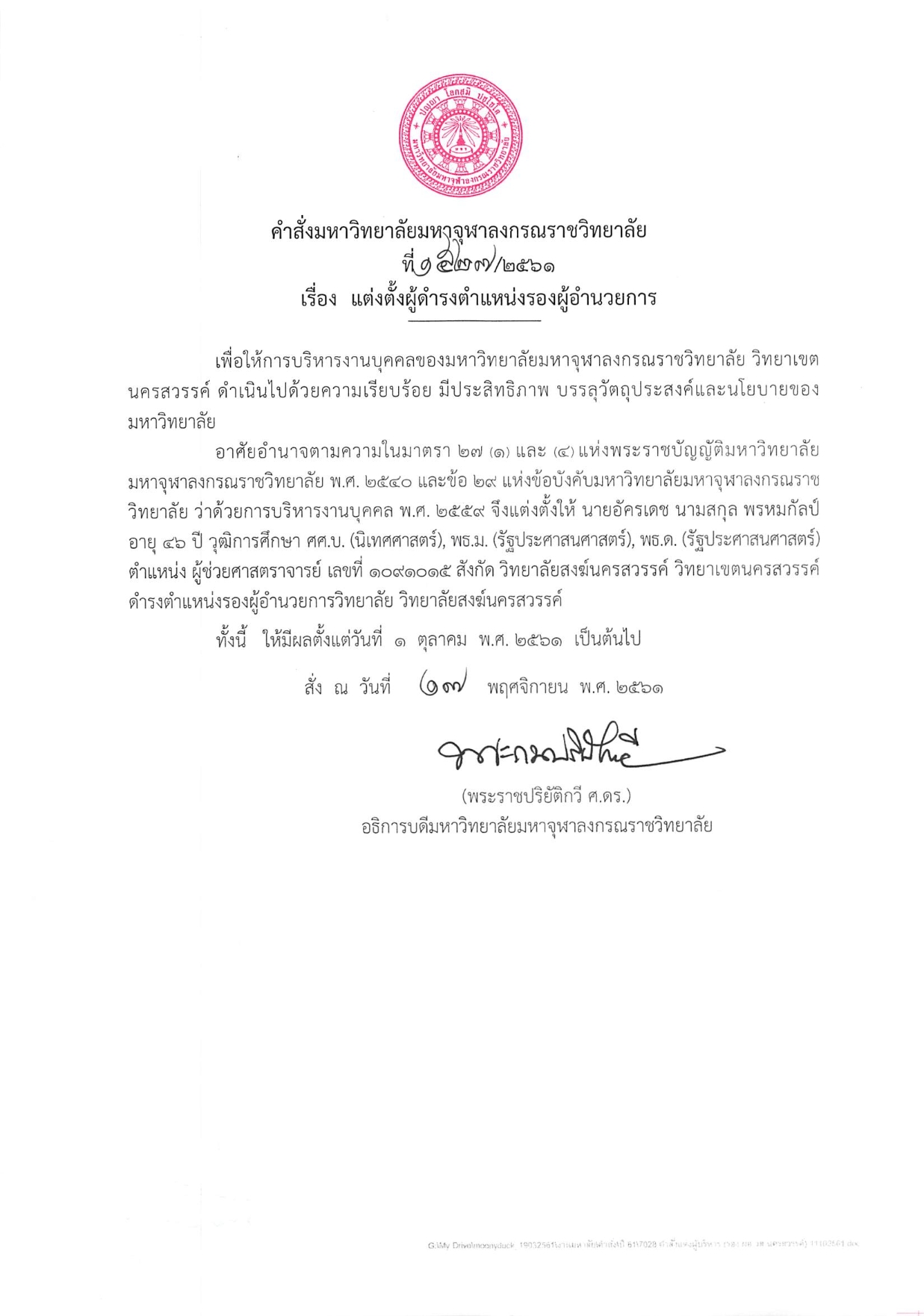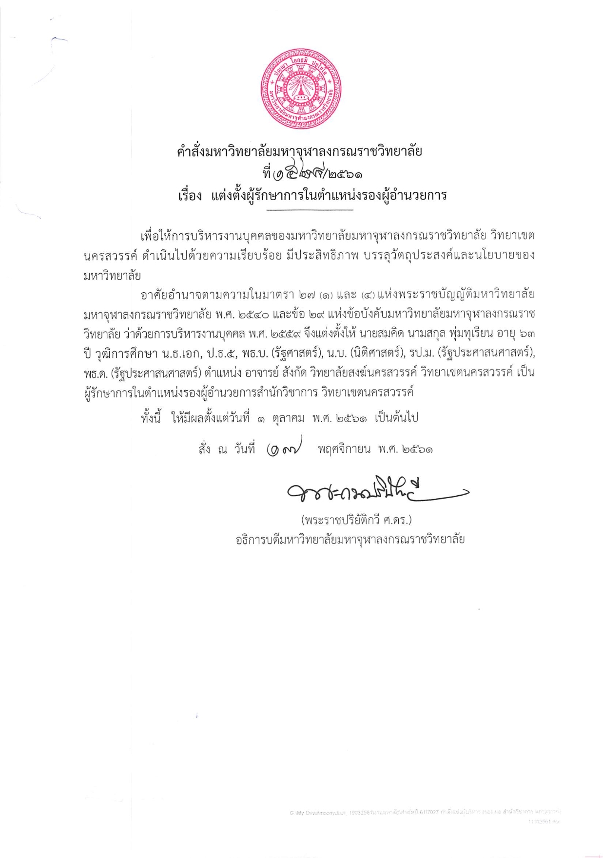 4. ผศ.ดร.สมคิด พุ่มทุเรียน ดำรงตำแหน่ง “รักษาการรองผู้อำนวยการสำนักวิชาการ วิทยาเขตนครสวรรค์”