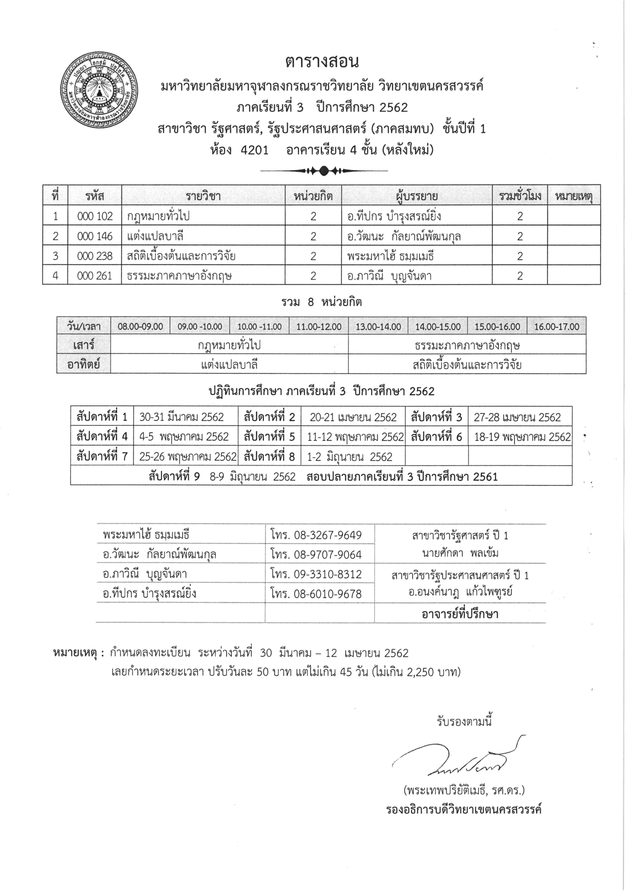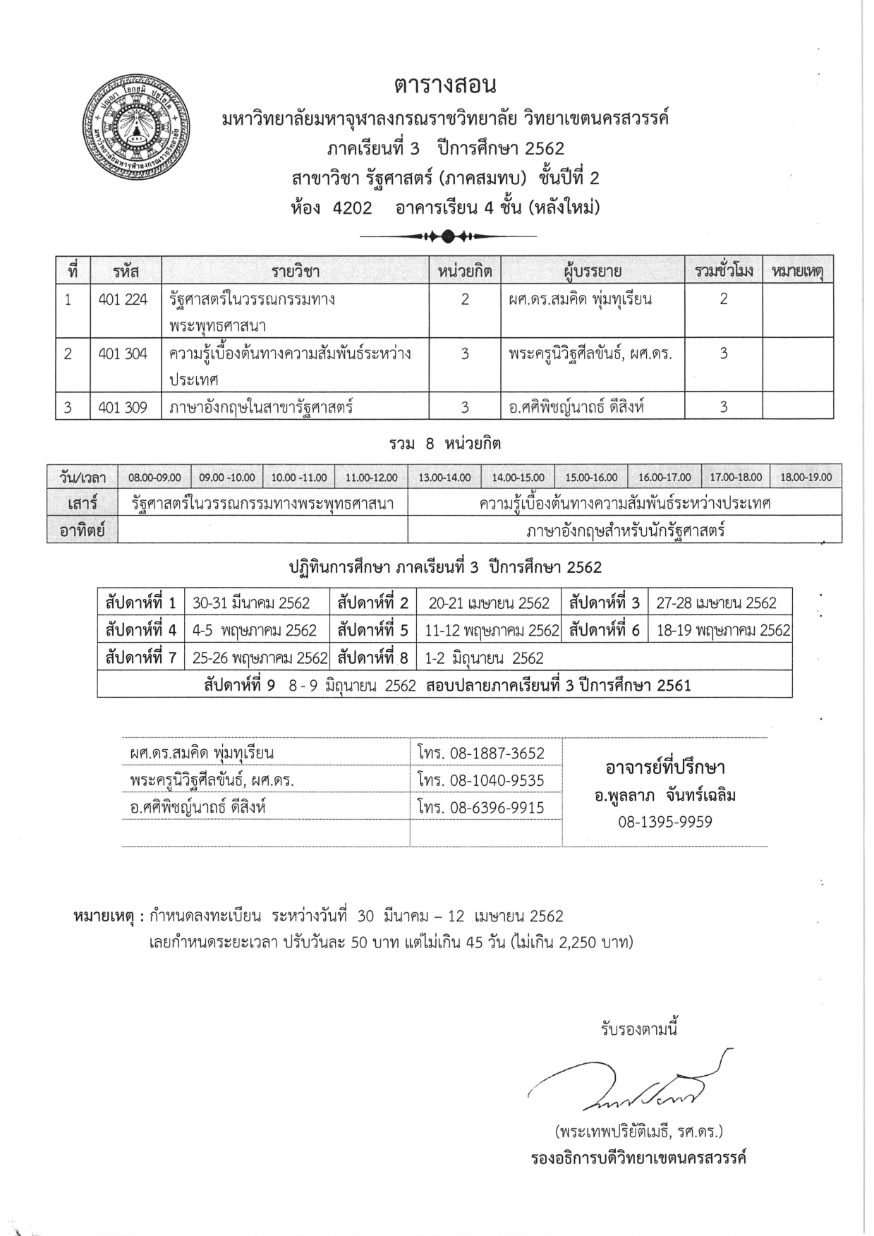 ประกาศมหาวิทยาลัยมหาจุฬาลงกรณราชวิทยาลัย วิทยาเขตนครสวรรค์ เรื่อง ปฏิทินการศึกษาระดับปริญญาตรี ภาคเรียนที่ ๒ ปีการศึกษา ๒๕๖๗07/11/2025