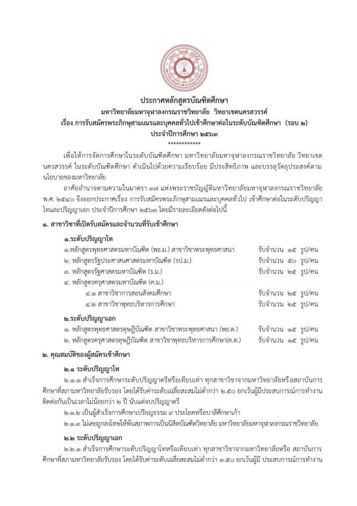 ประกาศมหาวิทยาลัยมหาจุฬาลงกรณราชวิทยาลัย วิทยาเขตนครสวรรค์ เรื่อง ปฏิทินการศึกษาระดับปริญญาตรี ภาคเรียนที่ ๒ ปีการศึกษา ๒๕๖๗07/11/2025