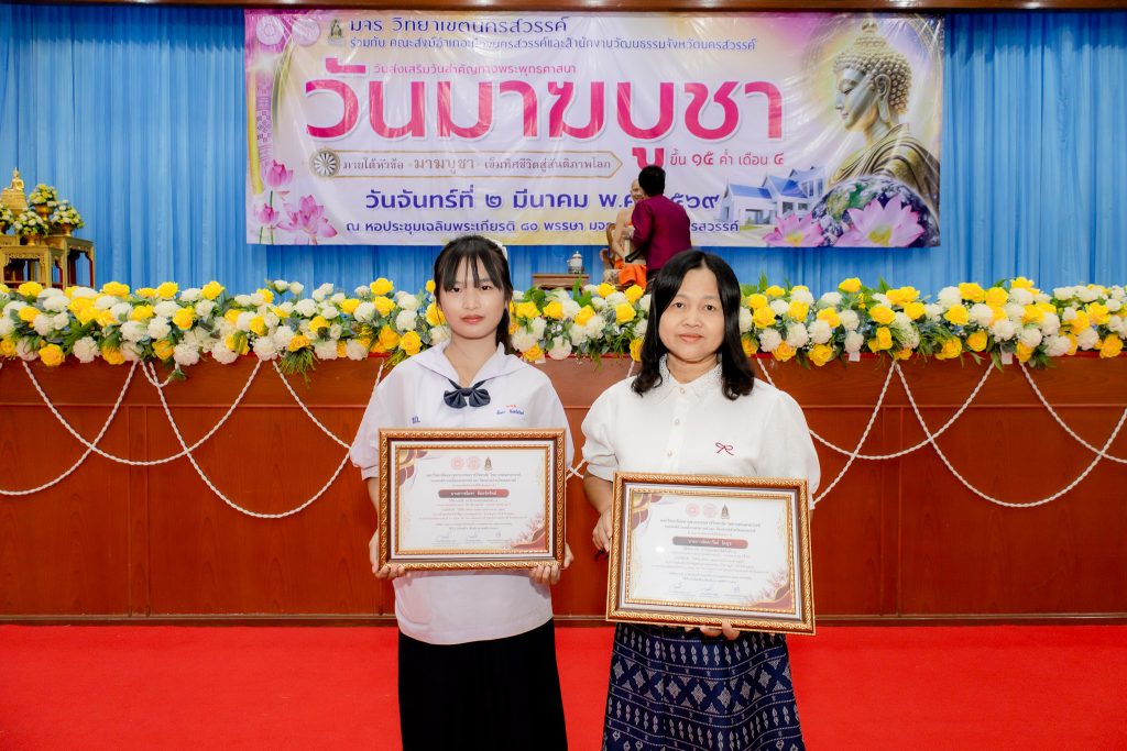 จัดกิจกรรม เนื่องในงานวันส่งเสริมพระพุทธศาสนา วันมาฆบูชา ประจำปี ๒๕๖๙ โดยมี พระครูศรีสุธรรมนิวิฐ รศ.ดร รักษาการแทนรองอธิการบดี เป็นประธานฝ่ายสงฆ์ และนางสาวนุชรินทร์ภัทร์ ธีระบุญยะ วัฒนธรรมจังหวัดนครสวรรค์ เป็นประธานฝ่ายคฤหัสถ์