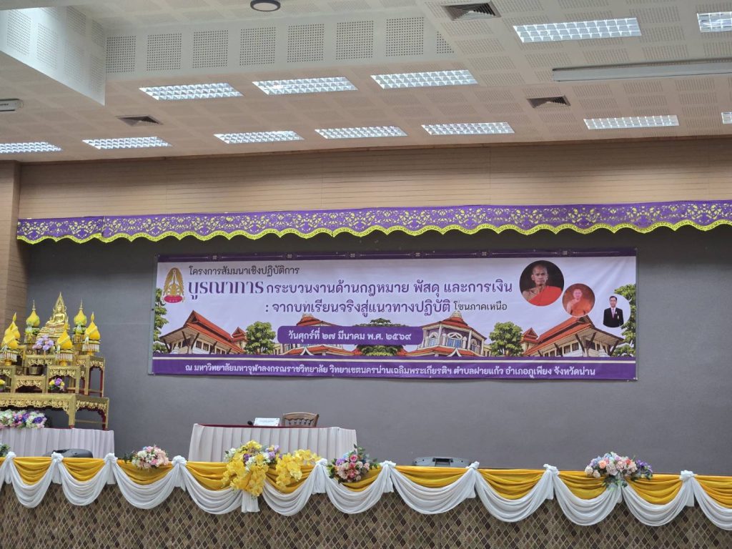 ผู้บริหารและเจ้าหน้าที่พัสดุ และการเงิน นำโดย ผศ.ศศิกิจจ์ อ่ำจุ้ย ผู้ช่วยอธิการบดีกิจการทั่วไป วิทยาเขตนครสวรรค์ เข้าร่วมโครงการสัมมนาเชิงปฏิบัติการ บูรณาการกระบวนงานด้านกฎหมาย พัสดุ และการเงิน จากบทเรียนจริงสู่แนวทางการปฏิบัติ โซนภาคเหนือ ณ วิทยาเขตน่านเฉลิมพระเกียรติฯ มหาวิทยาลัยมหาจุฬาลงกรณราชวิทยาลัย ตำบลฝายแก้ว อำเภอภูเพียง จังหวัดน่าน วันที่ ๒๗ มีนาคม ๒๕๖๙