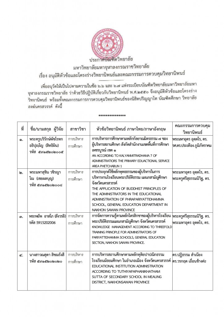 Share Facebook Twitter LinkedIn Pinterest Email ประกาศอนุมัติหัวข้อและโครงร่างวิทยานิพนธ์ และคณะกรรมการควบคุมวิทยานิพนธ์ **หากมีข้อสงสัยประการใด ติดต่อได้ที่ห้องบัณฑิตศึกษา อาคารหลวงพ่อคูณ หรือ โทร. 083-4883016 (ดิเรก) , 087-7319199 (พระเอกจิตต์) Related posts:ผลการสอบคัดเลือก เข้าศึกษาระดับปริญญาโท - ปริญญาเอก และ กำหนดการรายงานตัวรายงานผลการประเมินตนเองออนไลน์ของ สกอ. (CHE QA online)คำสั่งมหาวิทยาลัยมหาจุสาลงกรณราชวิทยาลัย ที่ ๓๙๑/๒๕๖๔ เรื่อง แต่งตั้งผู้ช่วยอธิการบดี มหาวิทยาลัยมหา...