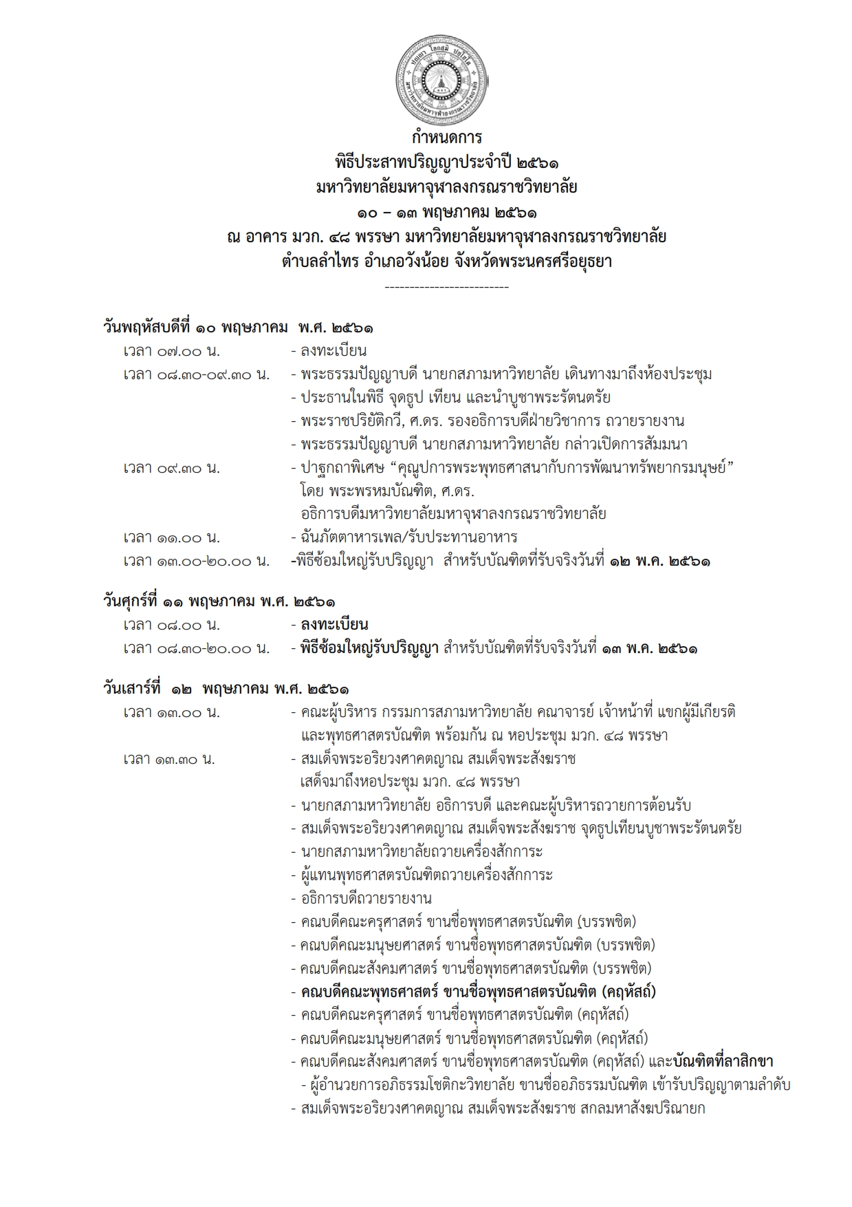 ประกาศมหาวิทยาลัยมหาจุฬาลงกรณราชวิทยาลัย วิทยาเขตนครสวรรค์ เรื่อง ปฏิทินการศึกษาระดับปริญญาตรี ภาคเรียนที่ ๒ ปีการศึกษา ๒๕๖๗07/11/2025