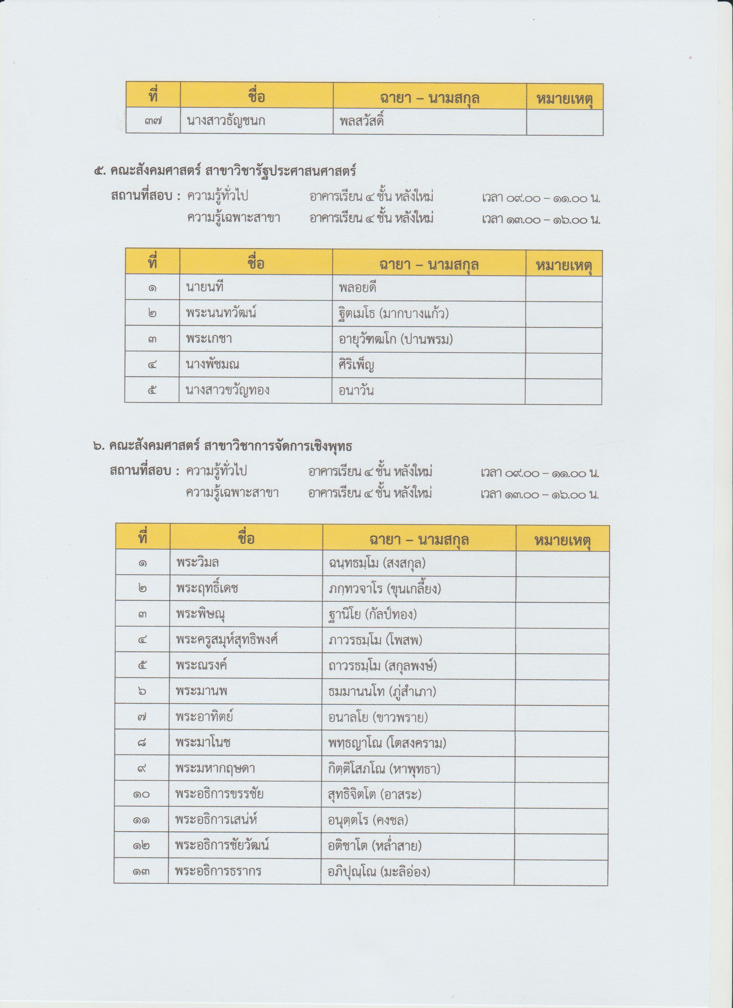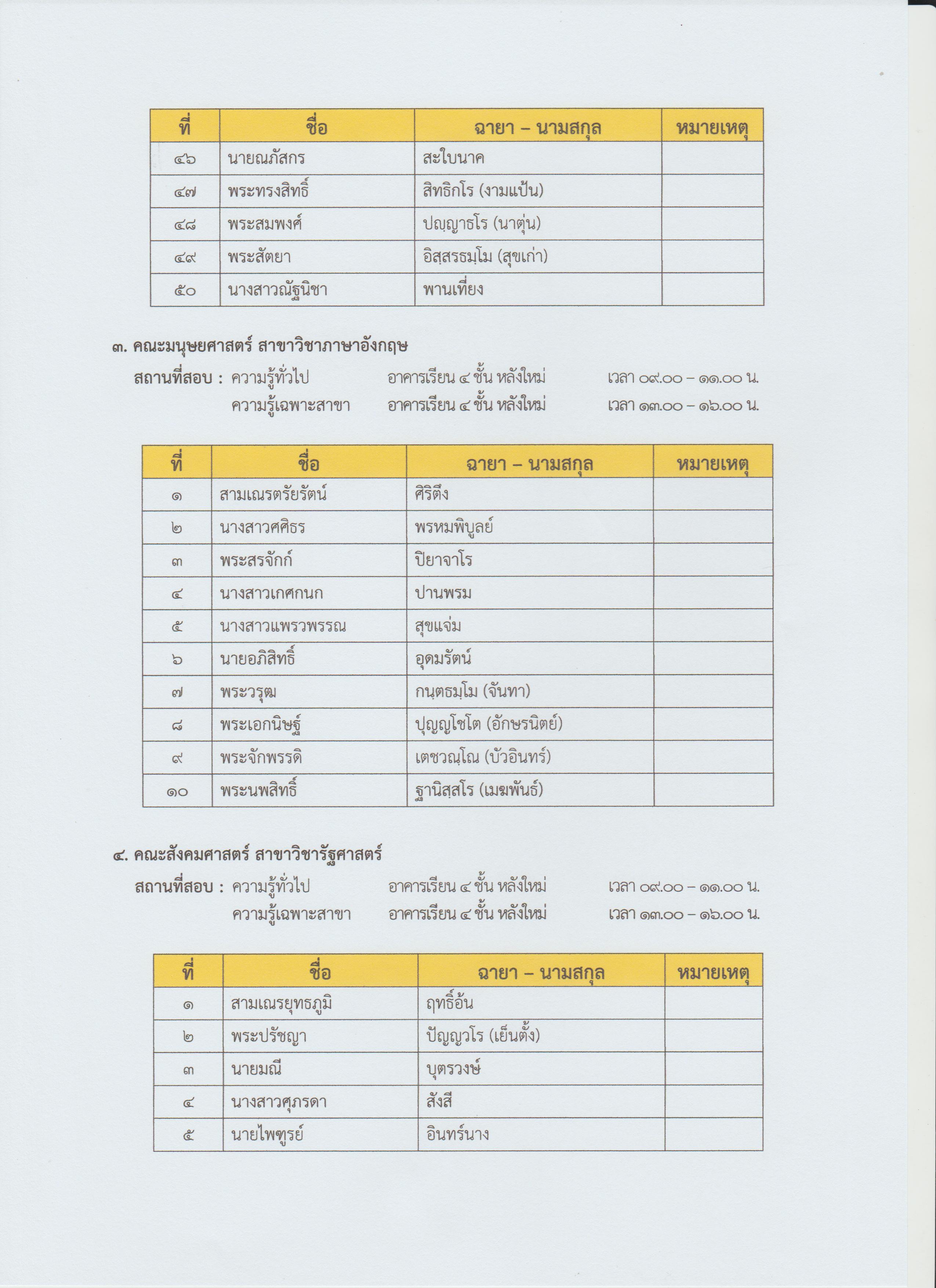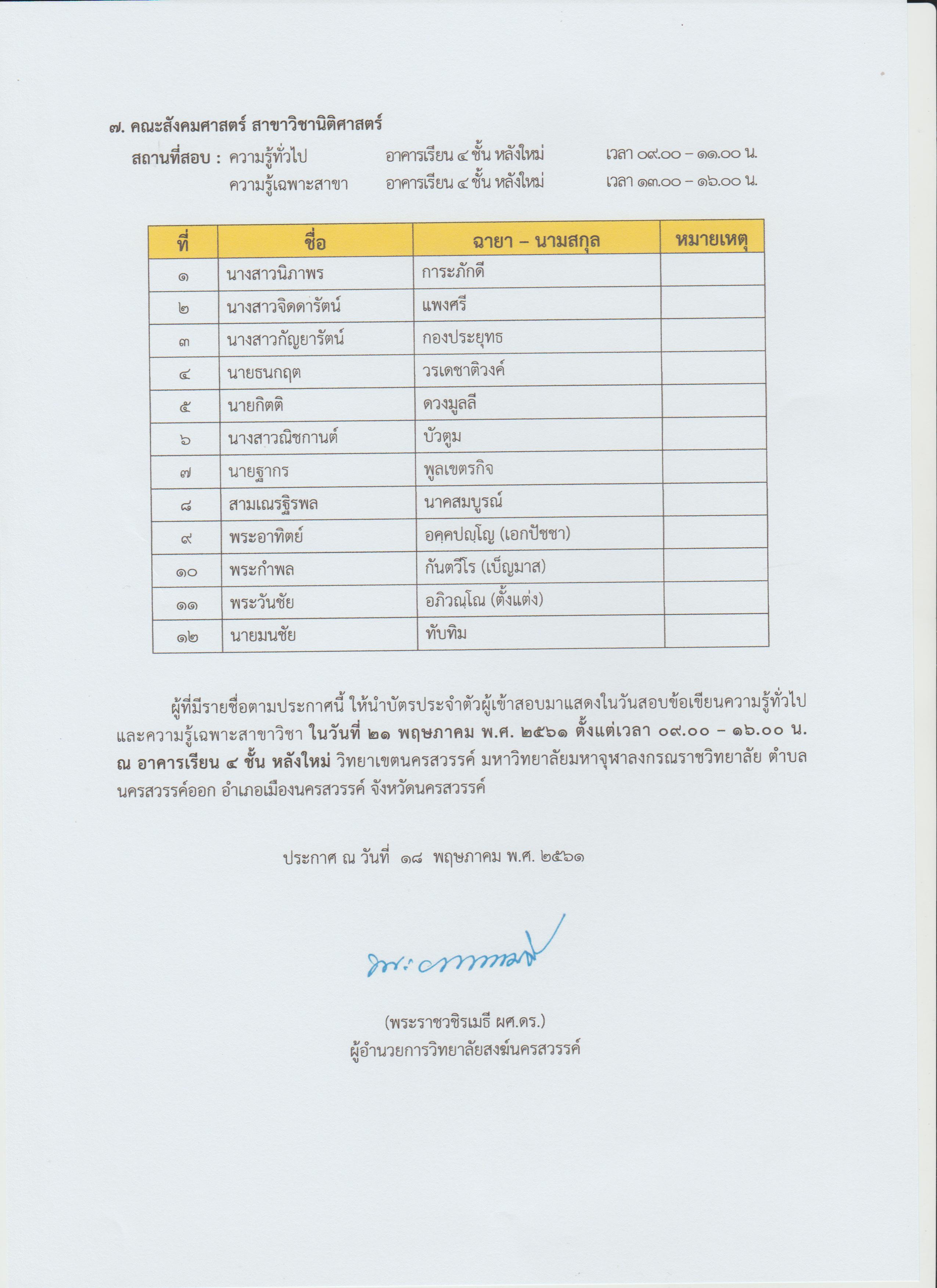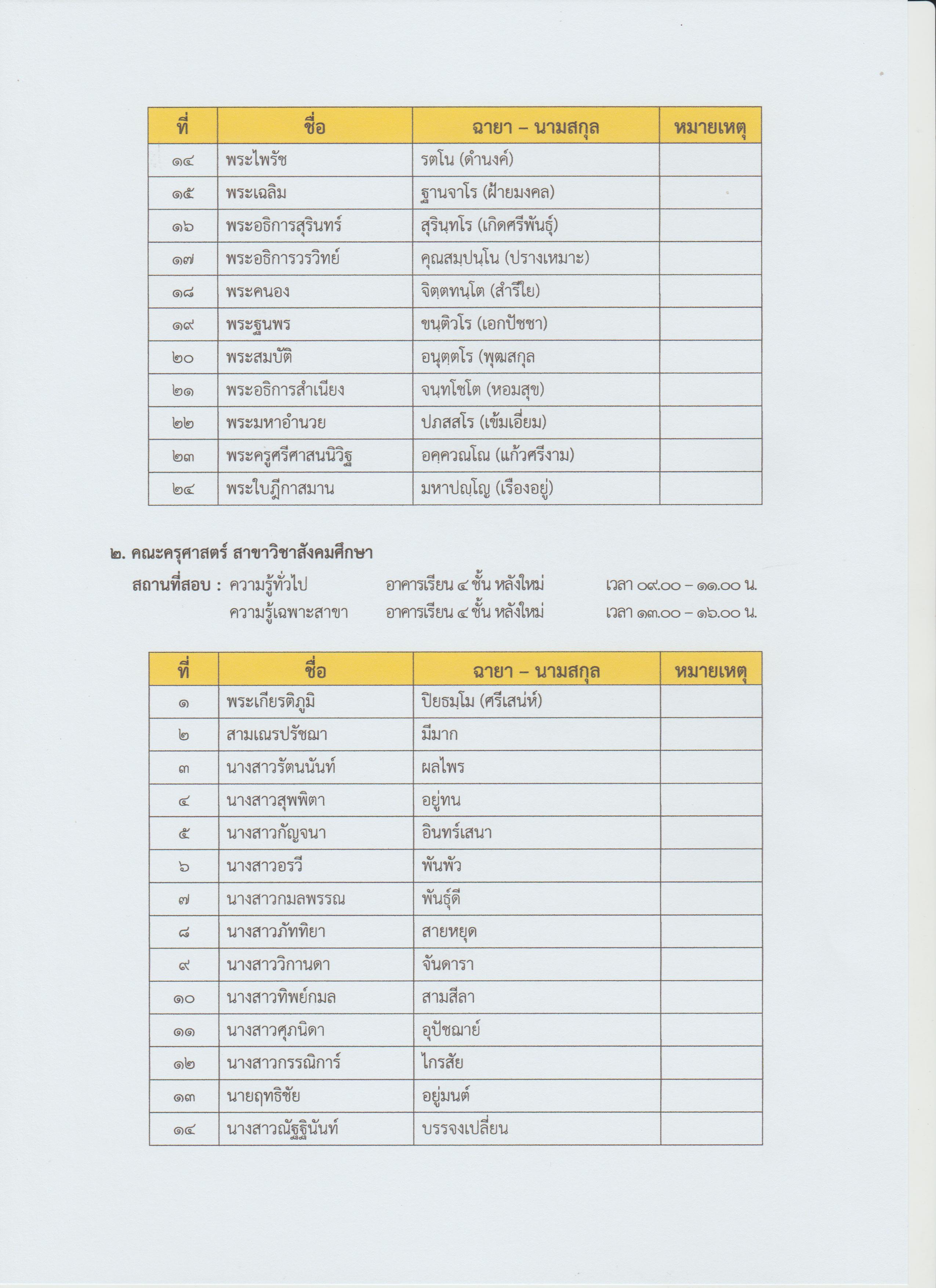 ผู้ที่มีรายชื่อตามประกาศนี้ ให้นำบัตรประจำตัวผู้เข้าสอบมาแสดงในวันสอบข้อเขียนความรู้ทั่วไป และความรู้เฉพาะสาขาวิชา ในวันที่ ๒๑ พฤษภาคม พ.ศ. ๒๕๖๑ ตั้งแต่เวลา ๐๙.๐๐ – ๑๖.๐๐ น.